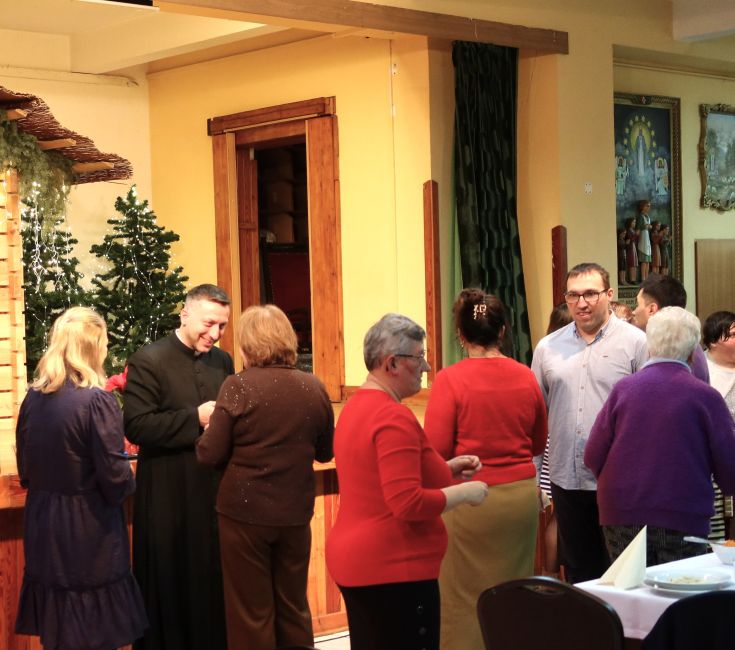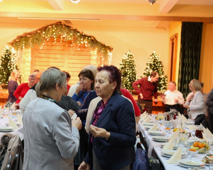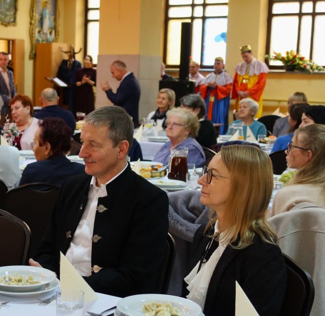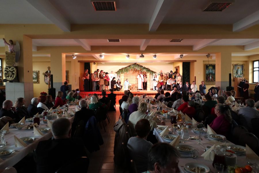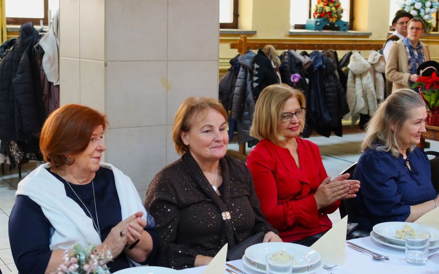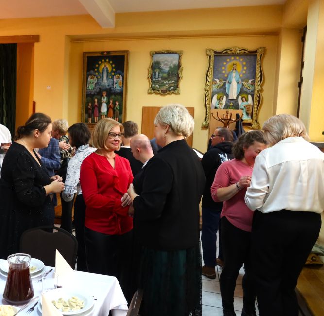 Kulminacyjnym momentem spotkania było wspólne zasiadanie do wigilijnego stołu, przy którym nie zabrakło rozmów, uśmiechów i serdecznej atmosfery. Całe wydarzenie upłynęło w ciepłym, świątecznym klimacie, pełnym radości, wzajemnej życzliwości i poczucia wspólnoty.