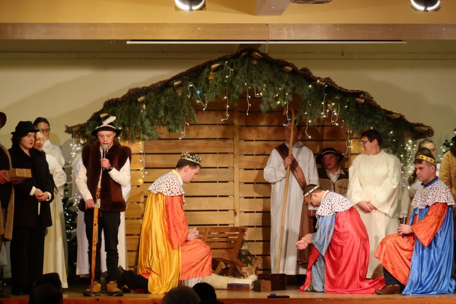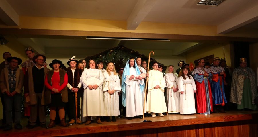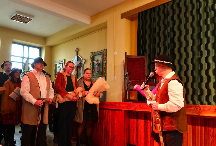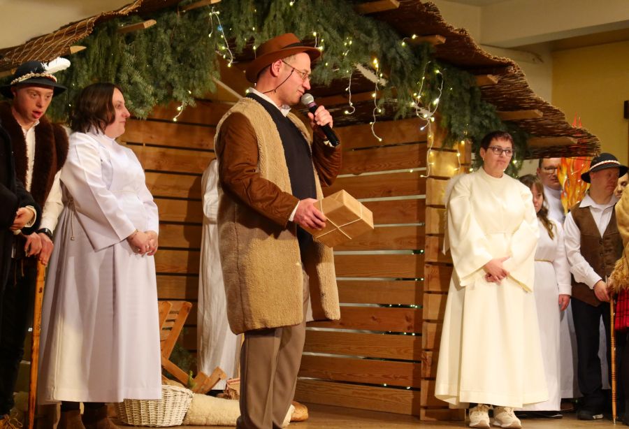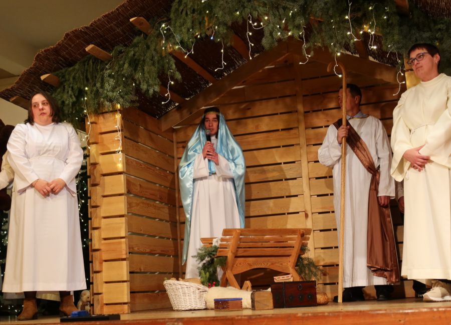 Uroczystość rozpoczęła się od wyjątkowego występu – uczestnicy warsztatu zaprezentowali przygotowane przez siebie Jasełka, które wprowadziły wszystkich w świąteczny nastrój i spotkały się z ciepłym przyjęciem oraz wzruszeniem zgromadzonych.
