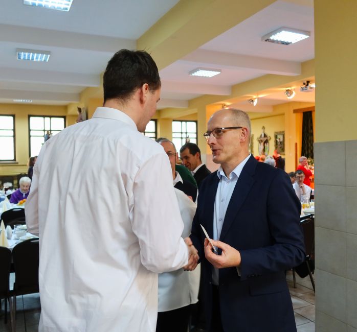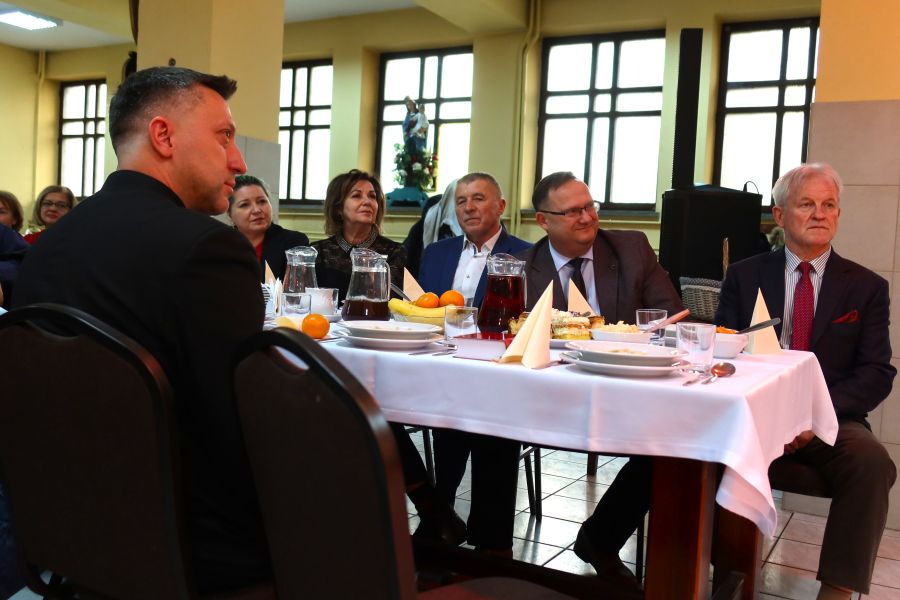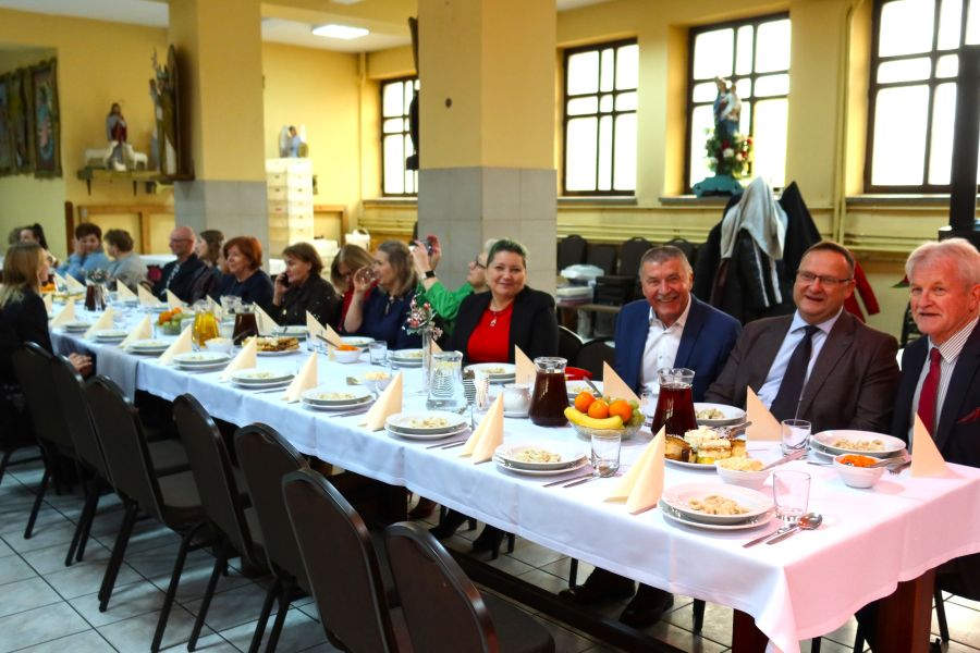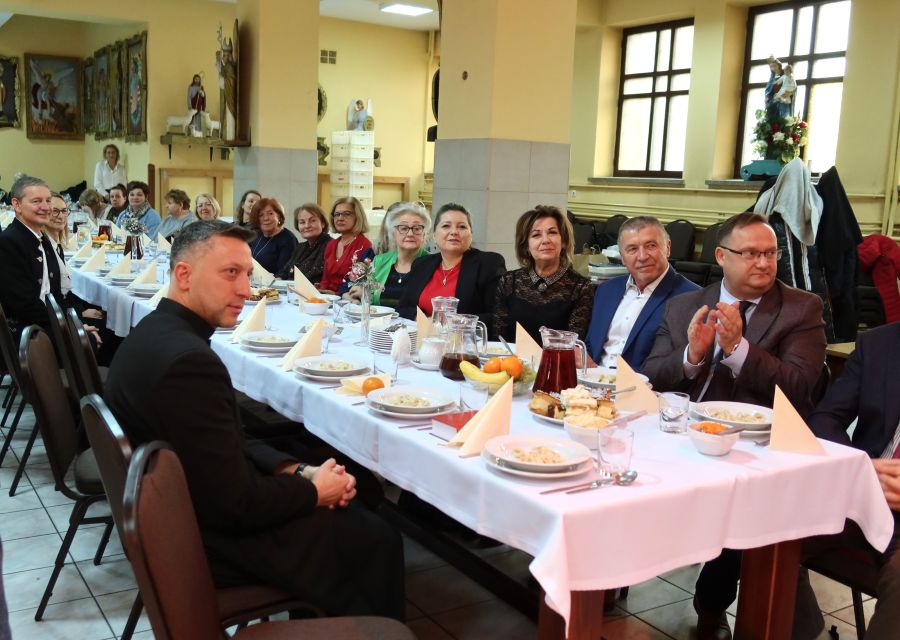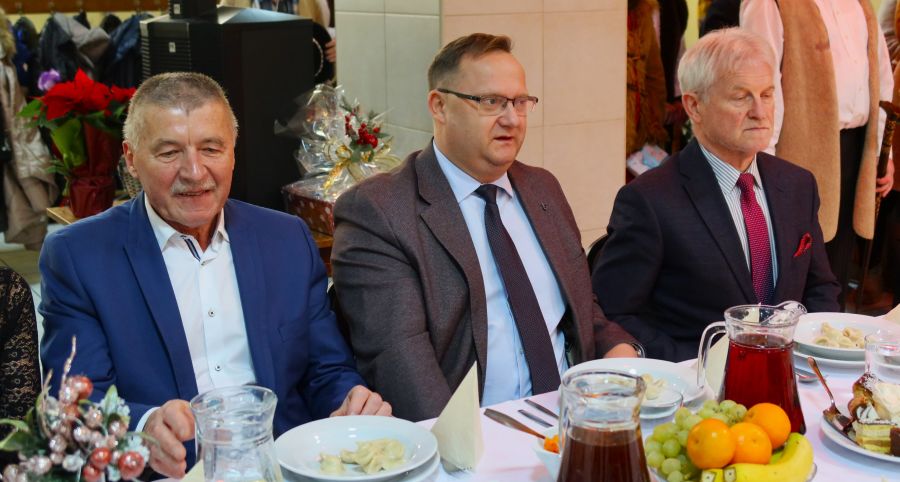 Następnie przyszedł czas na słowa życzeń skierowane do uczestników spotkania przez zaproszonych gości. Po wspólnej modlitwie nastąpiło tradycyjne łamanie się opłatkiem, symbolizujące jedność, życzliwość i wzajemne wsparcie.